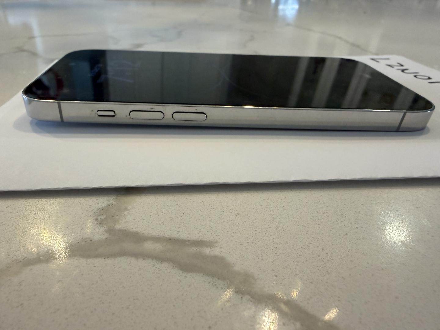 Apple iPhone 14 Pro 128GB in Silver. Phone is fully functional and unlocked for use on any carrier. Front screen and back glass are both in excellent condition with no cracks. Frame shows light normal wear from regular use. Battery health is shown in photos. Cameras, Face ID, buttons, speakers, microphones, Wi-Fi, Bluetooth, and cellular all work properly. Clean ESN/IMEI, no iCloud lock. Phone has been erased and reset. No box or accessories included. Ships quickly via USPS.