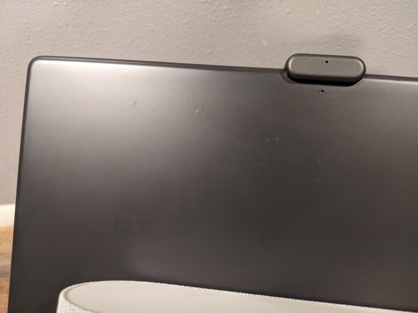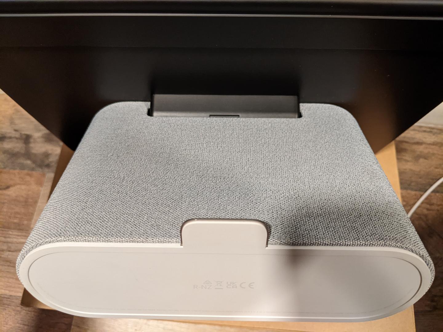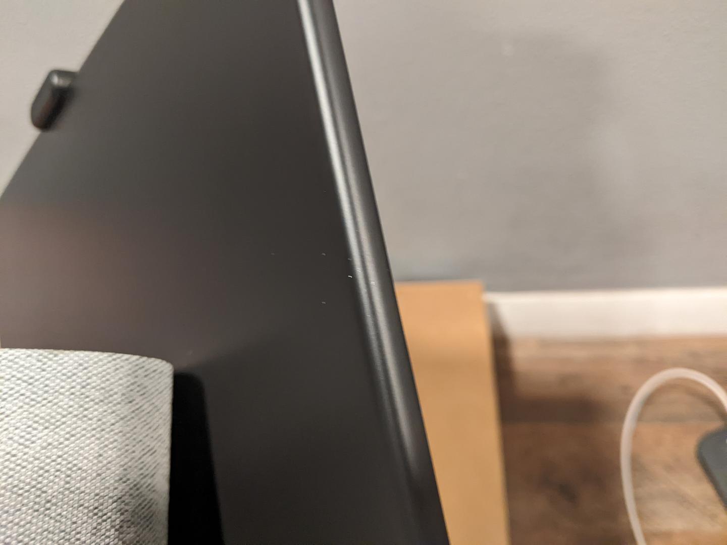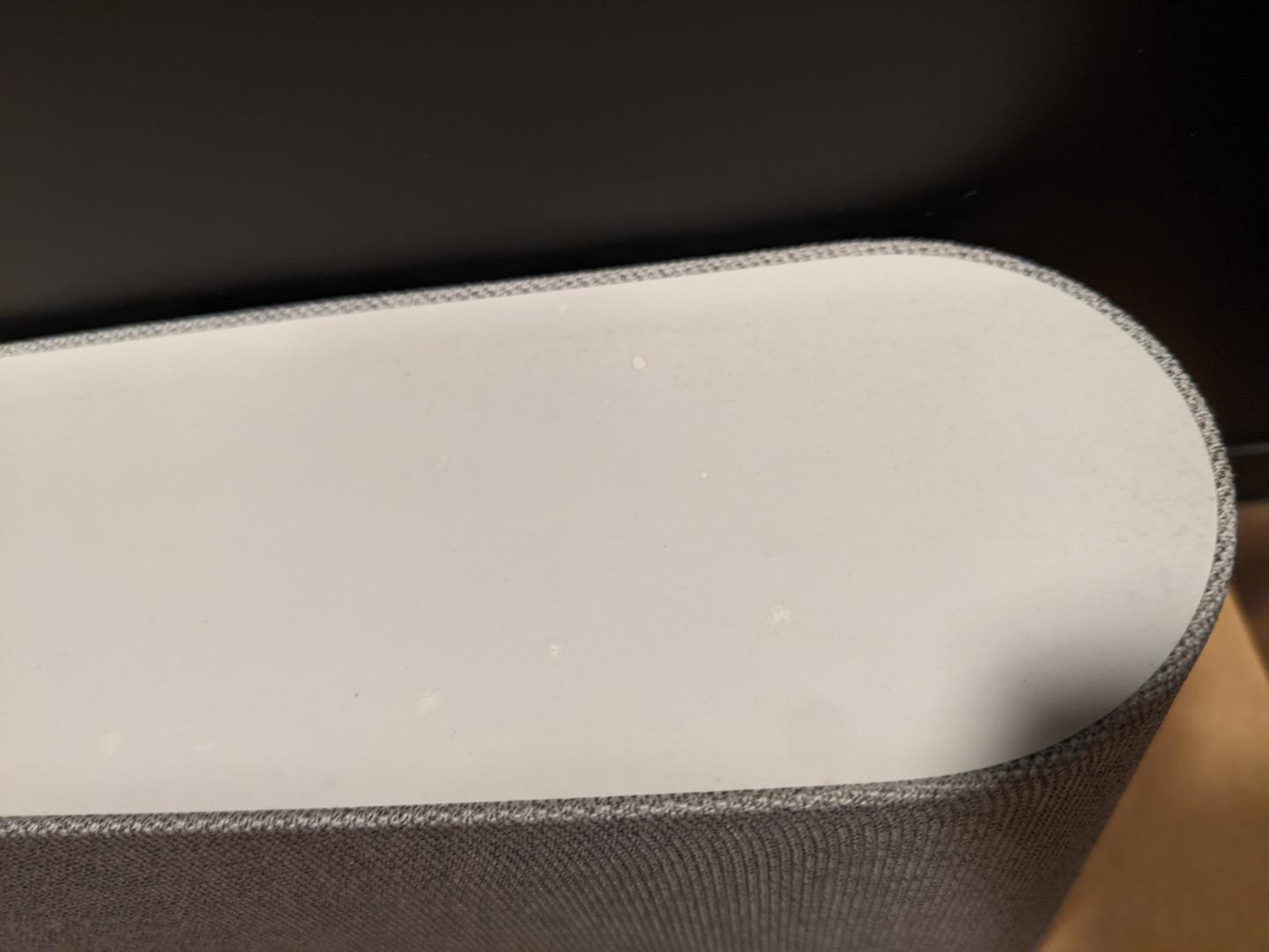 Overall the unit is in great condition. There are a few wear marks on the rear of the unit -- most of them, I'm almost tempted to say are from being shipped in the box without any protection. There a few extremely fine/light scratches on the glass (which are hard to find and capture on camera). There's a few marks on the top of the speaker base. There is one extremely small/fine mark on the front of the speaker fabric.