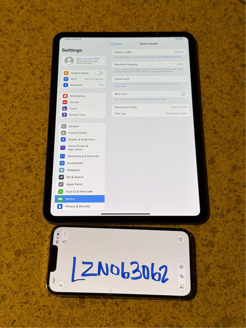 Few light scratches on screen no damage around frame or back or screen battery health at 100% with only two cycle counts with only 3 months of use