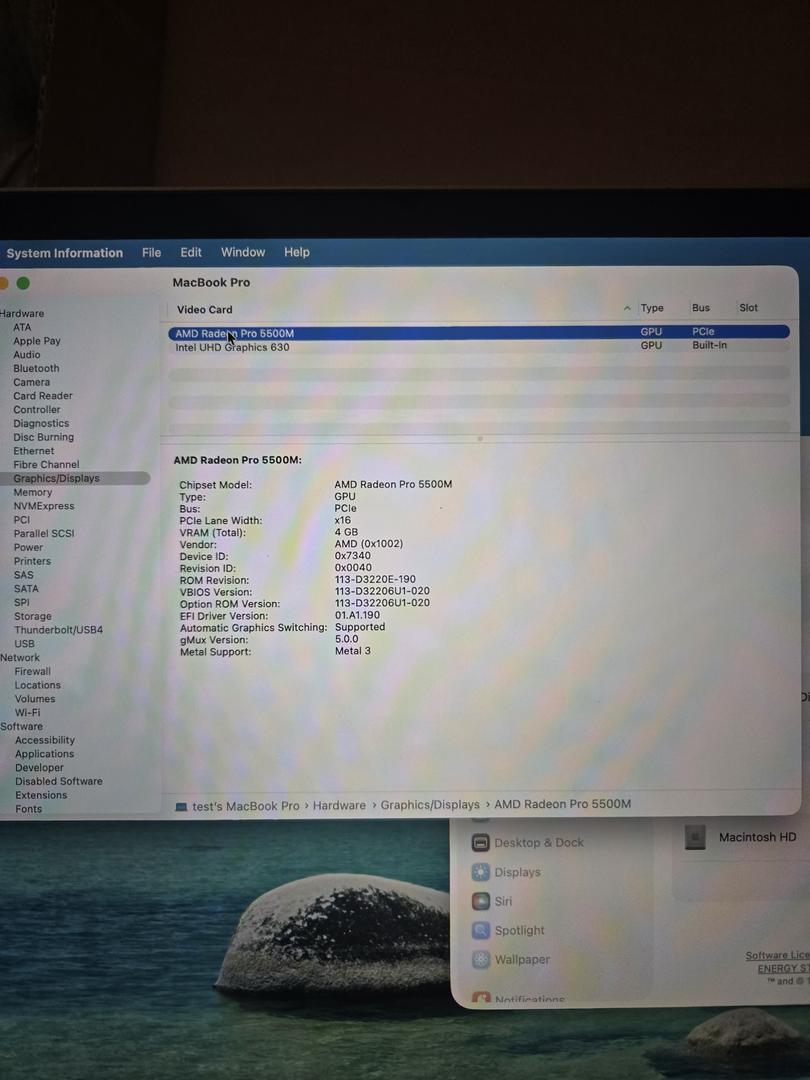 @michaemia and @Ahmed A - AMD Radion Pro 5500M, 4GB