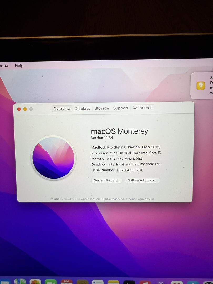 MacBook Pro 13", 2015/Fully Functional/8G RAM/256GB SSD/Grade B (Password to Login: admin)