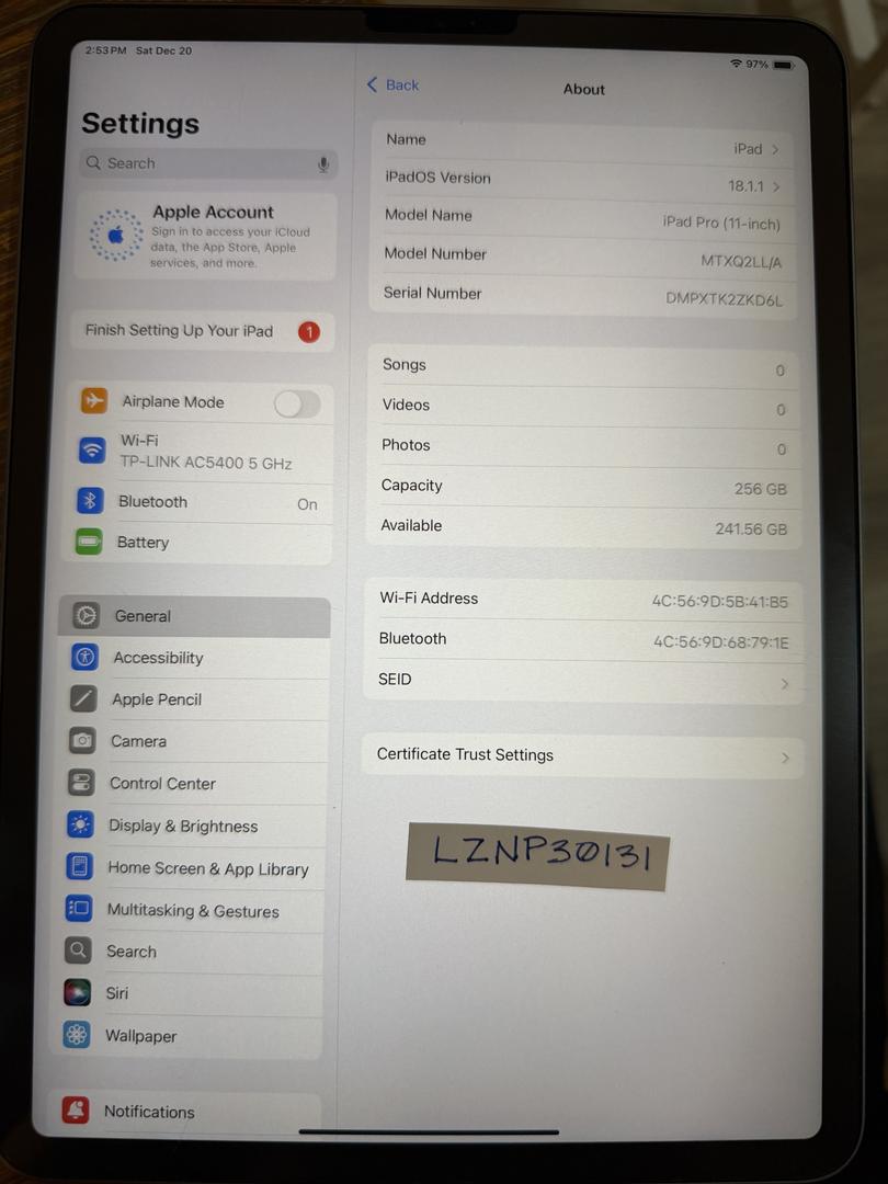 11” iPad Pro 256GB Wi-Fi only (1st gen. 2018 model)