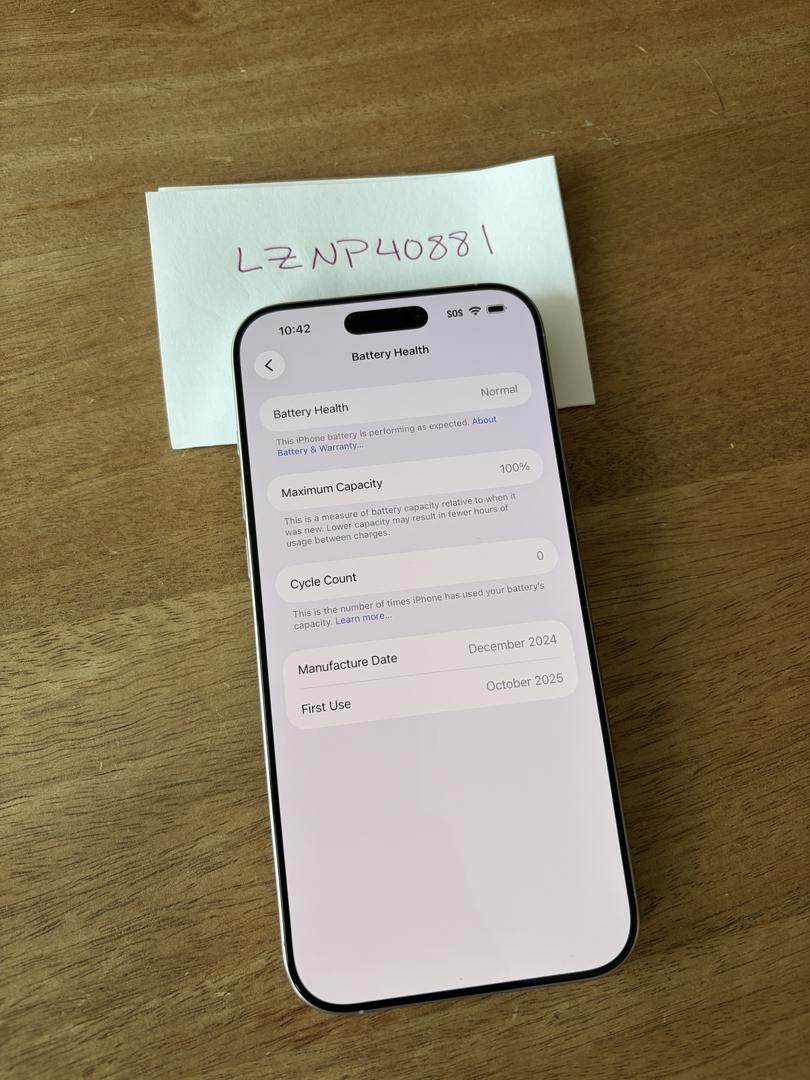 Brand new iPhone 16 Pro Max. Received as a replacement on AppleCare and have not used since. Cycle count shows 0 and battery health is 100%.