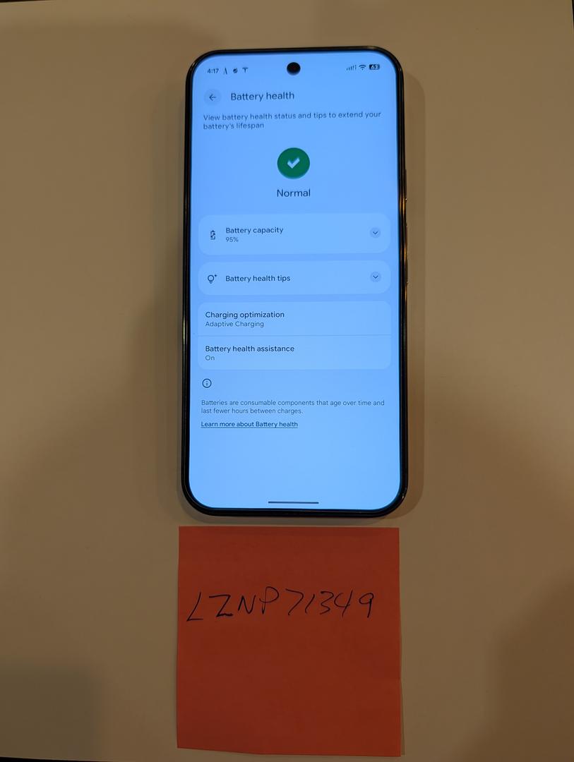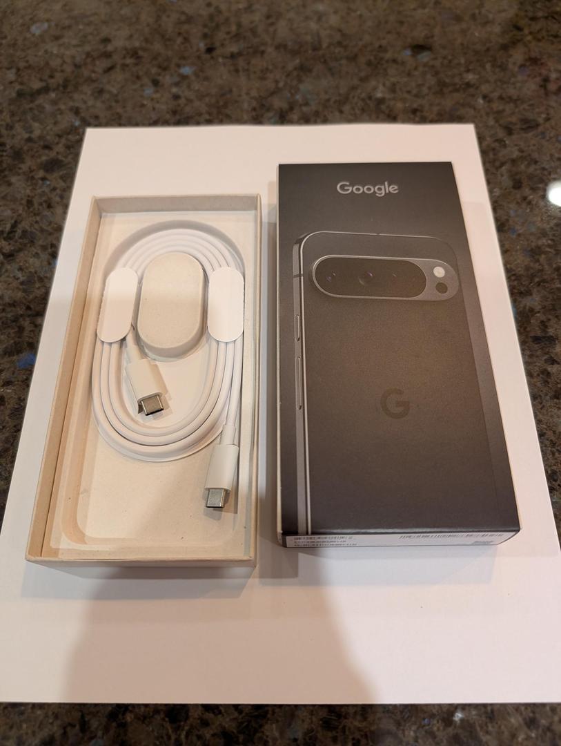 Mint condition Pixel 9 Pro XL. Includes wallet, box, and unused USB cable. Battery health 95%. Spectrum is listed as the carrier, but it's unlocked.