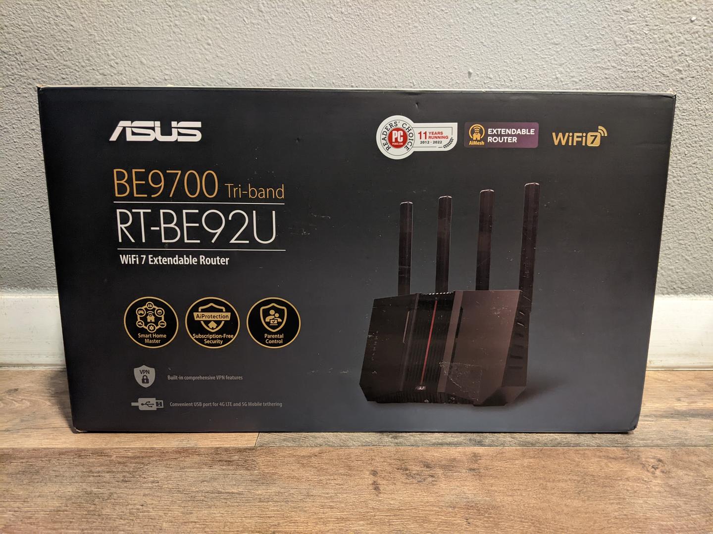 Asus RT-BE92U BE9700 Tri-Band WiFi 7 AiMesh Router +Asus Warranty Thru 1/3/28