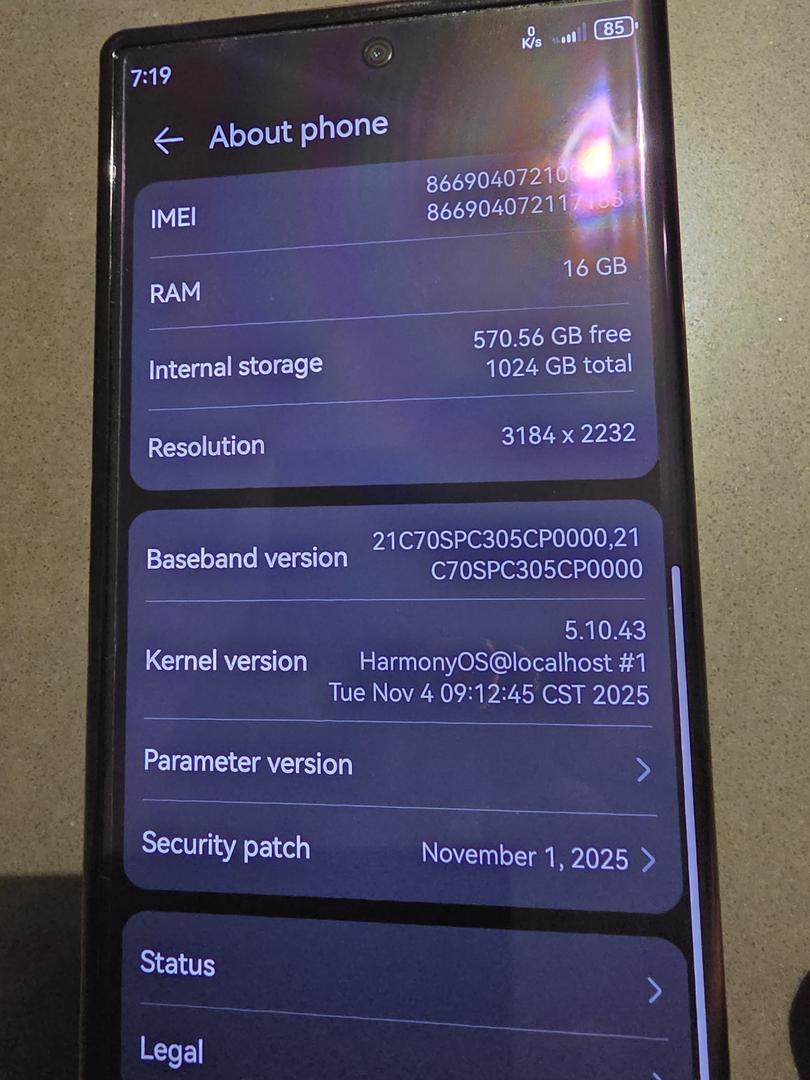 Excellent condition hardly used. Was a secondary device the entire time. Original box and accessories included. Still on HarmonyOS 4.2 if you would prefer to use Android apps.