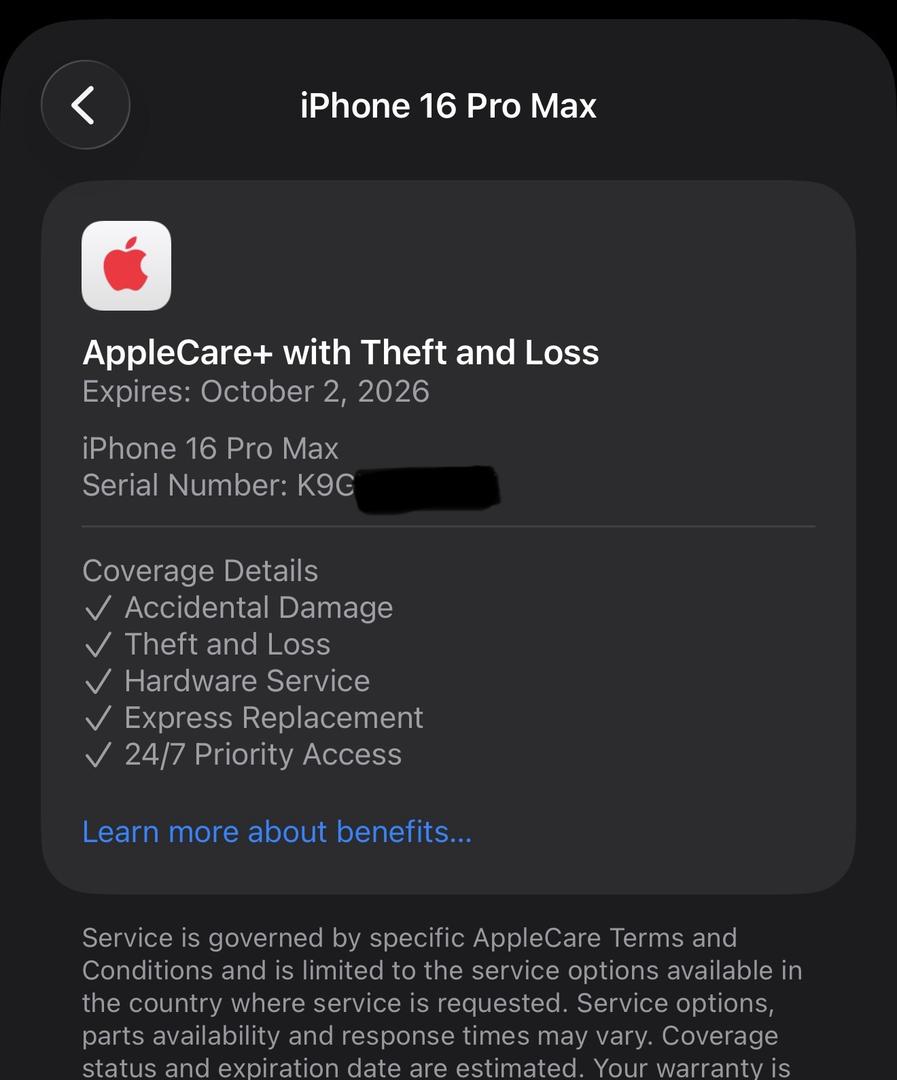 iPhone 16 Pro Max Unlocked Apple Care+