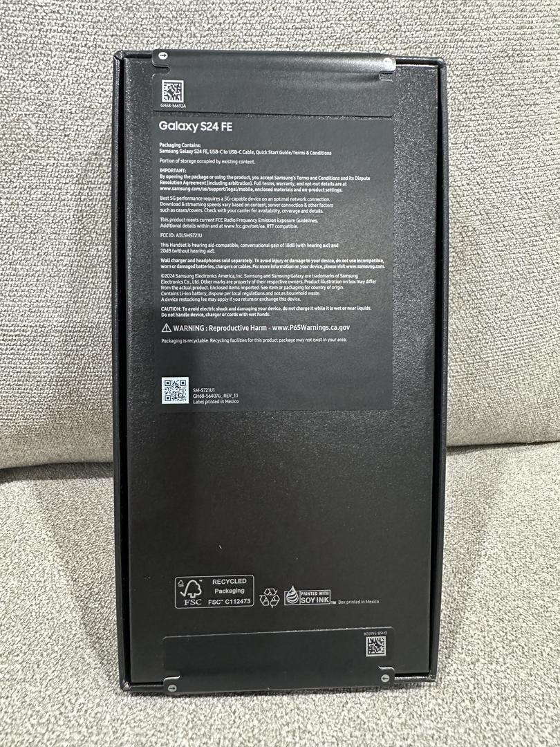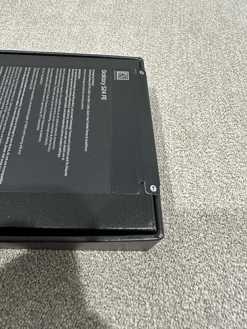 This listing is for a sealed in-box Galaxy S24 FE in graphite. This was purchased directly from Samsung, and has never been opened.