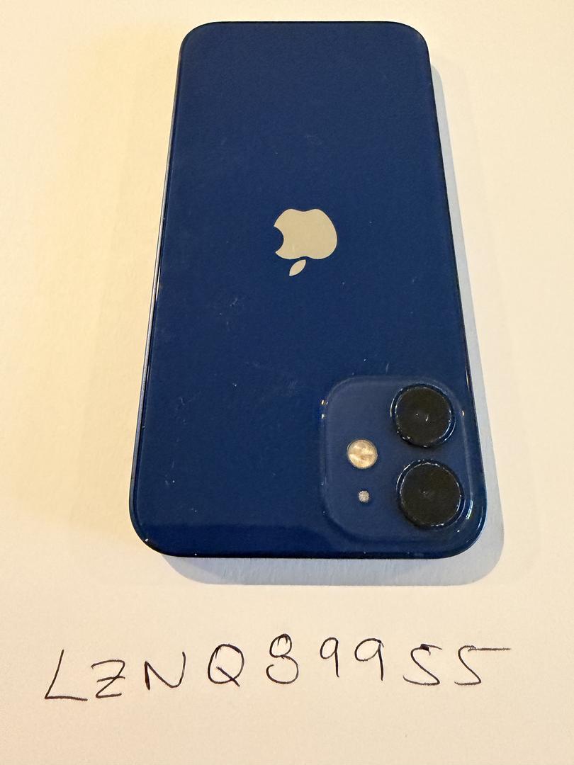 Blue iPhone 12 Mini 64GB. iPhone is unlocked with no SIM restrictions. Model MG733LLA. Product is Apple A2176.