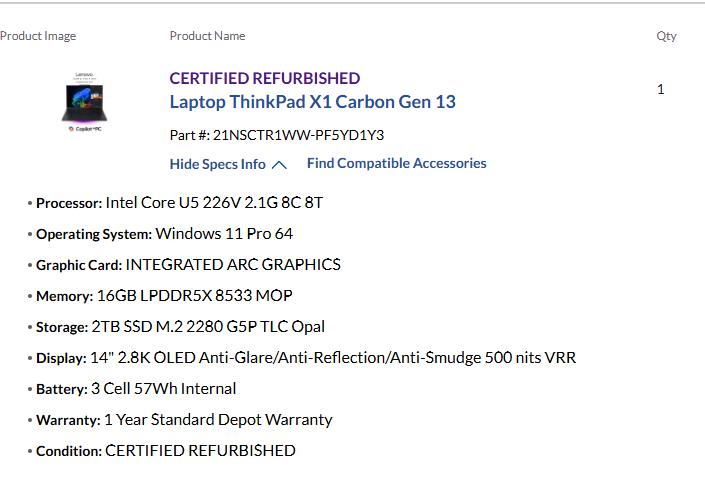 Refurbished X1 Carbon Aura Gen 13, 16GB RAM, 2TB SSD, 2.8K OLED Display!