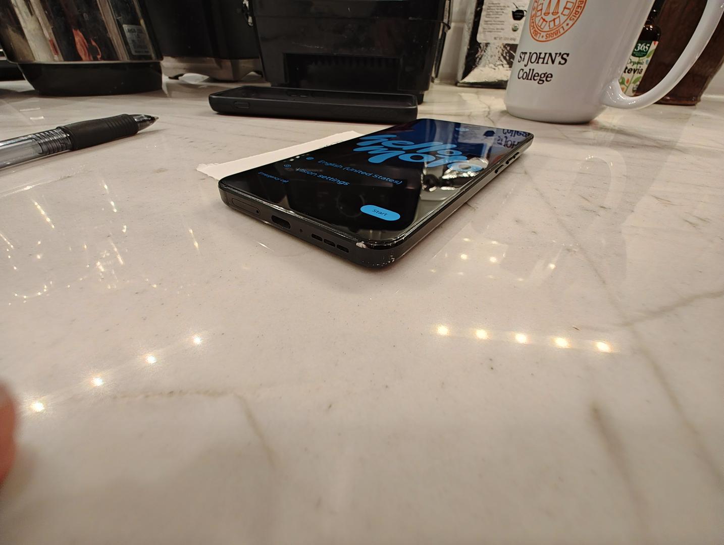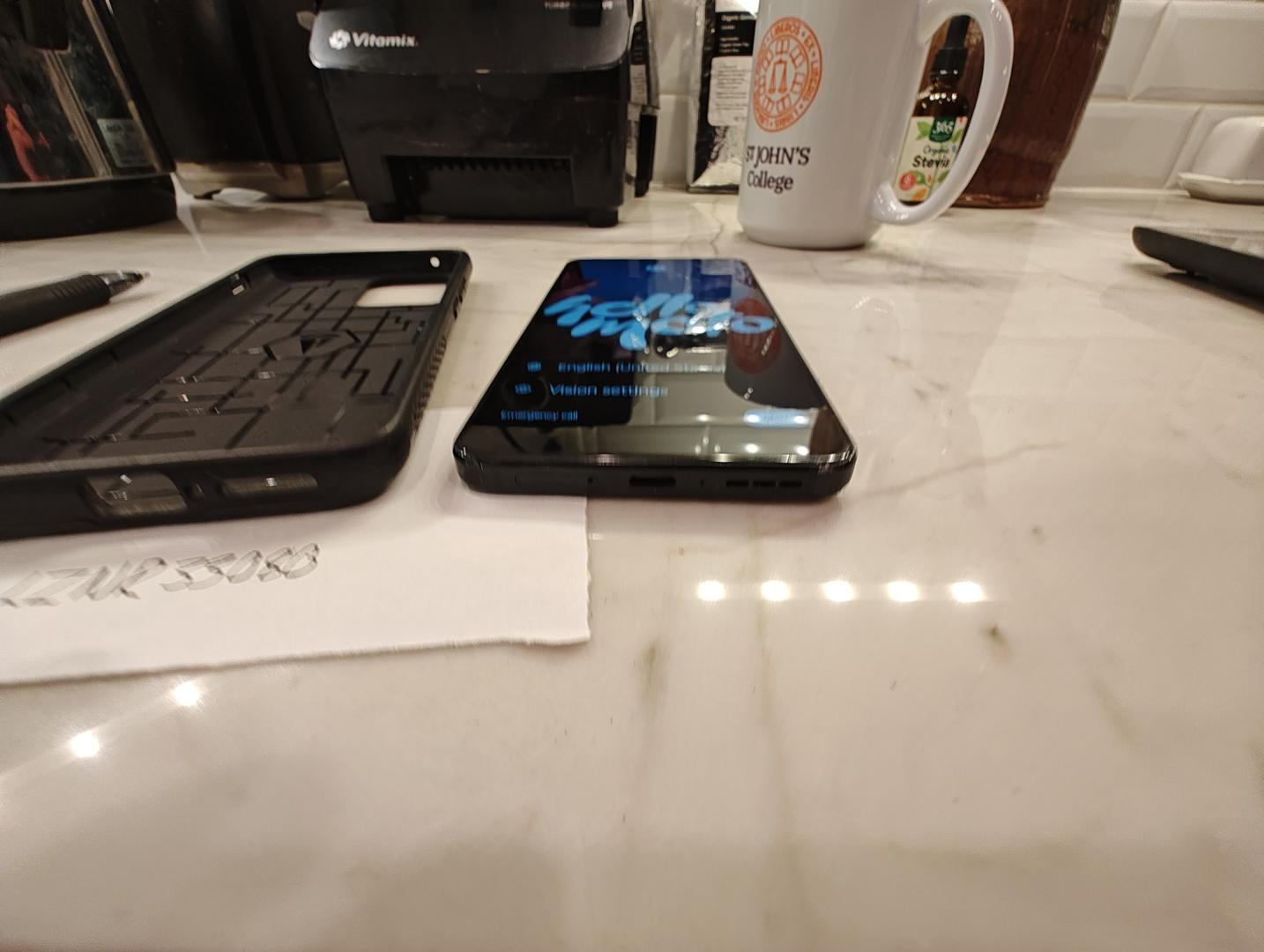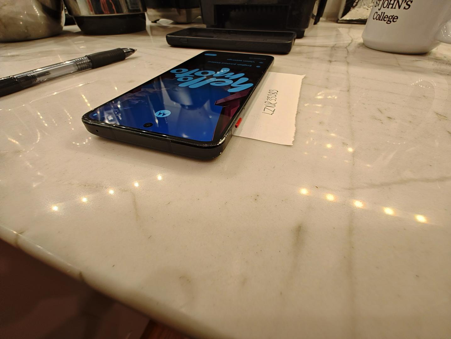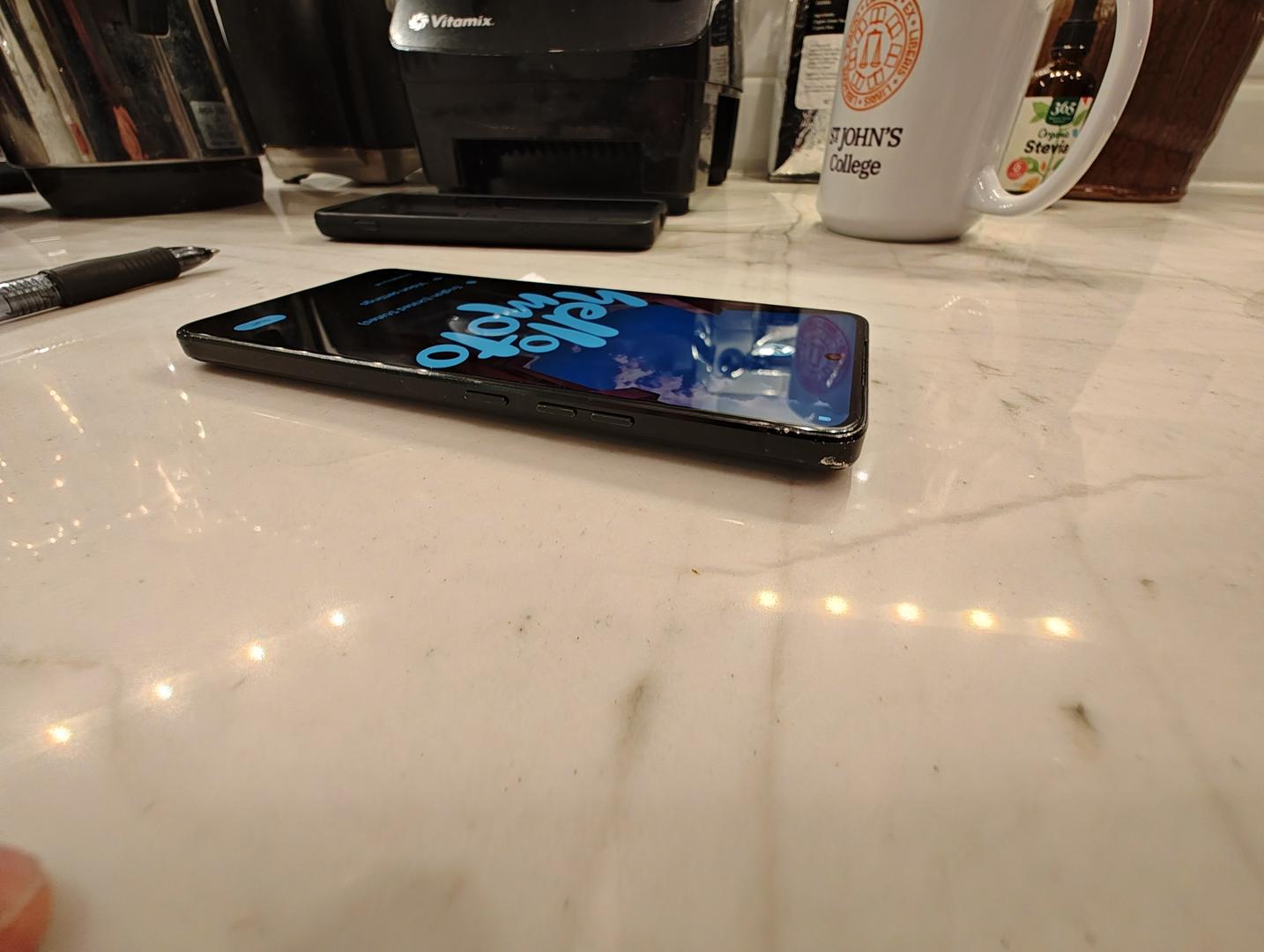 This is a used Motorola Thinkphone 2023 in good shape. A little rough around the edges literally, but not in any place that counts. Put it in the included case if you want, or let the patina show!
