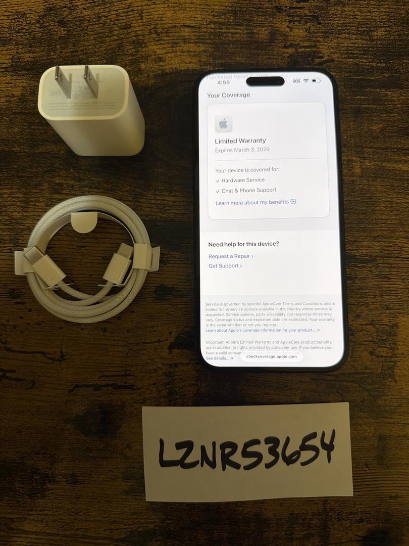 The phone has very minimal usage on it and still looks almost new , just a few extremely minor marks around the camera housing . There are only 5 charge cycles on the battery. Under Apple’s factory warranty until March 3rd 2026. Unlocked for any carrier and is currently running iOS 26.2