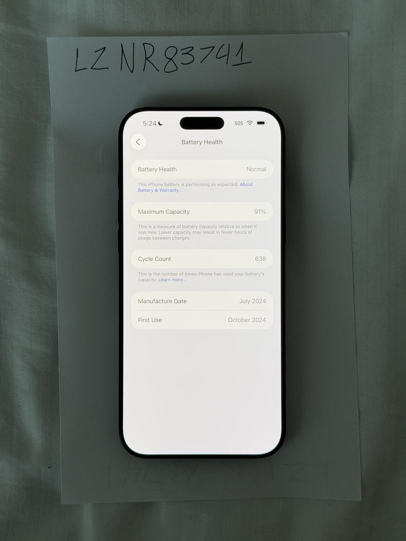 Selling my iPhone 16 Pro Max in Black, in mint condition. The phone has no scratches, cracks, or cosmetic damage and has been well cared for. Was always used with a case and screen protector.
