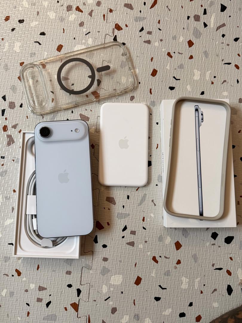Selling my iPhone Air in Mint Condition Sky Blue. I've loved it and had a screen protector on since Day One but decided to stick with my 17 Pro Max. Comes with Box, Unused USB-C Cable, Apple Official Magsafe Battery and Tan Bumper Case. Device is priced to go to a good home please no haggling! Over $1100 in Value!