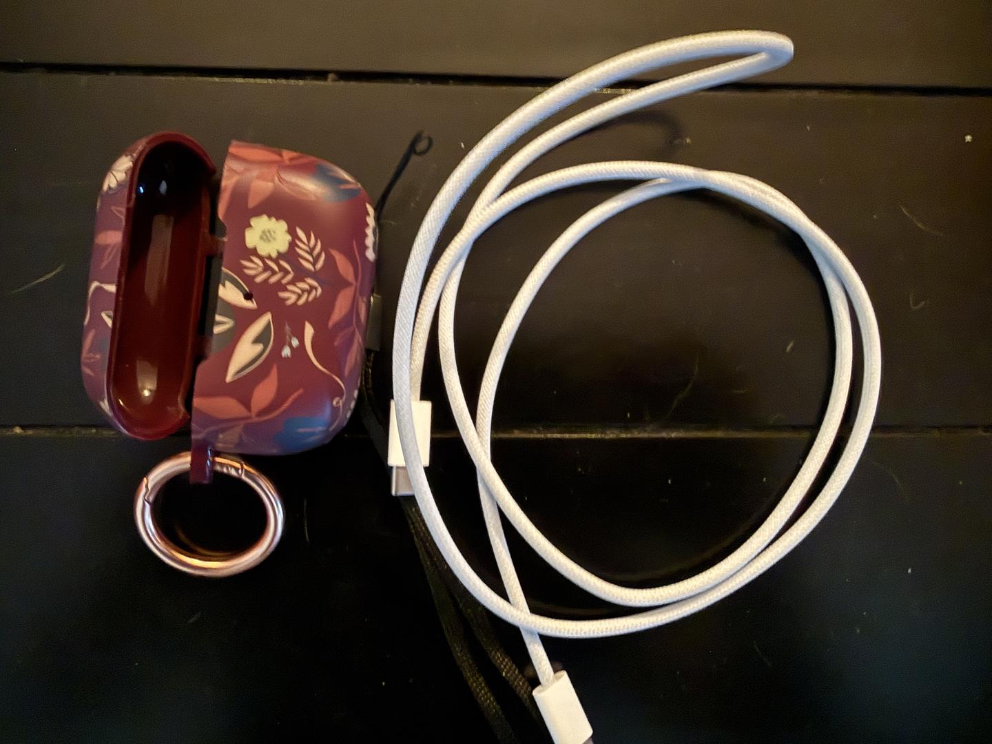 Comes with fresh and new ear tips (I refuse to use used ear tips so why would anyone else), a protective case for the AirPods charging case, the box, and a spare set of ear tips. These are all in great shape. Well taken care of.