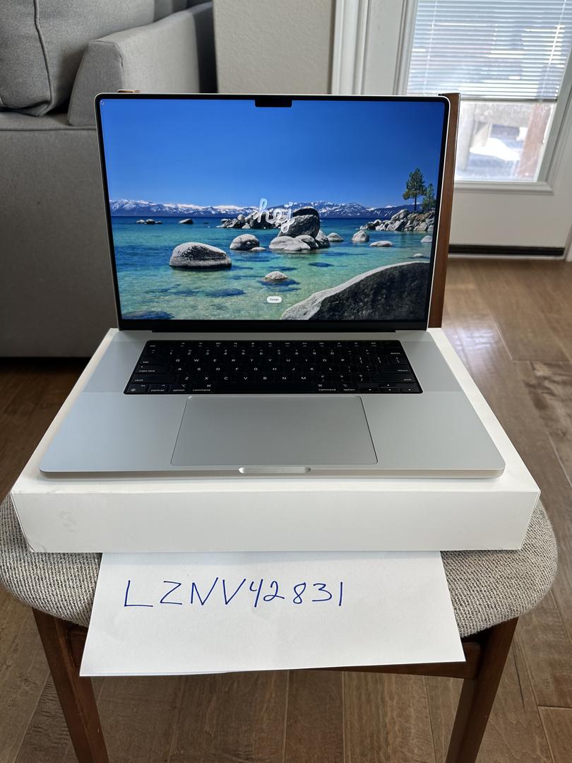 Apple Certified Refurbished M4 Max MacBook Pro 16" in Silver with nano-texture display. Purchased from Apple's refurbished store March 5, 2025, lightly used in smoke-free home office.