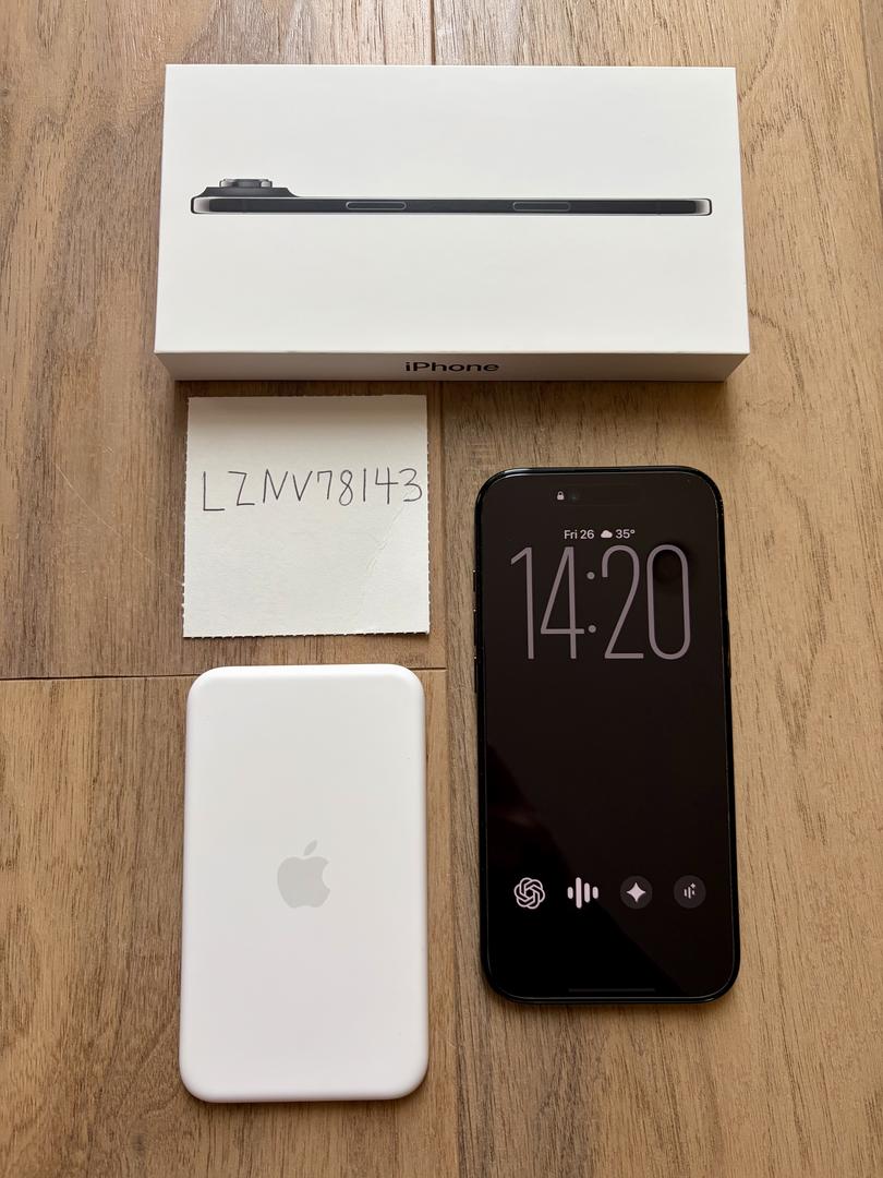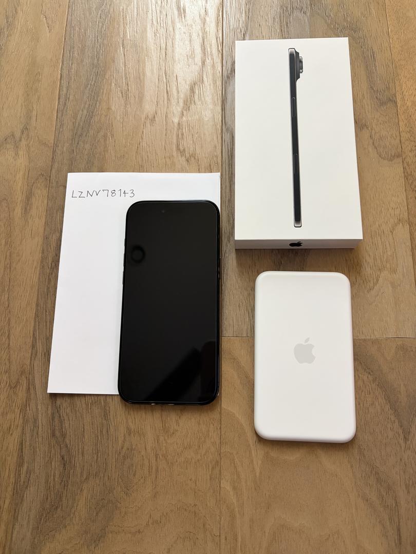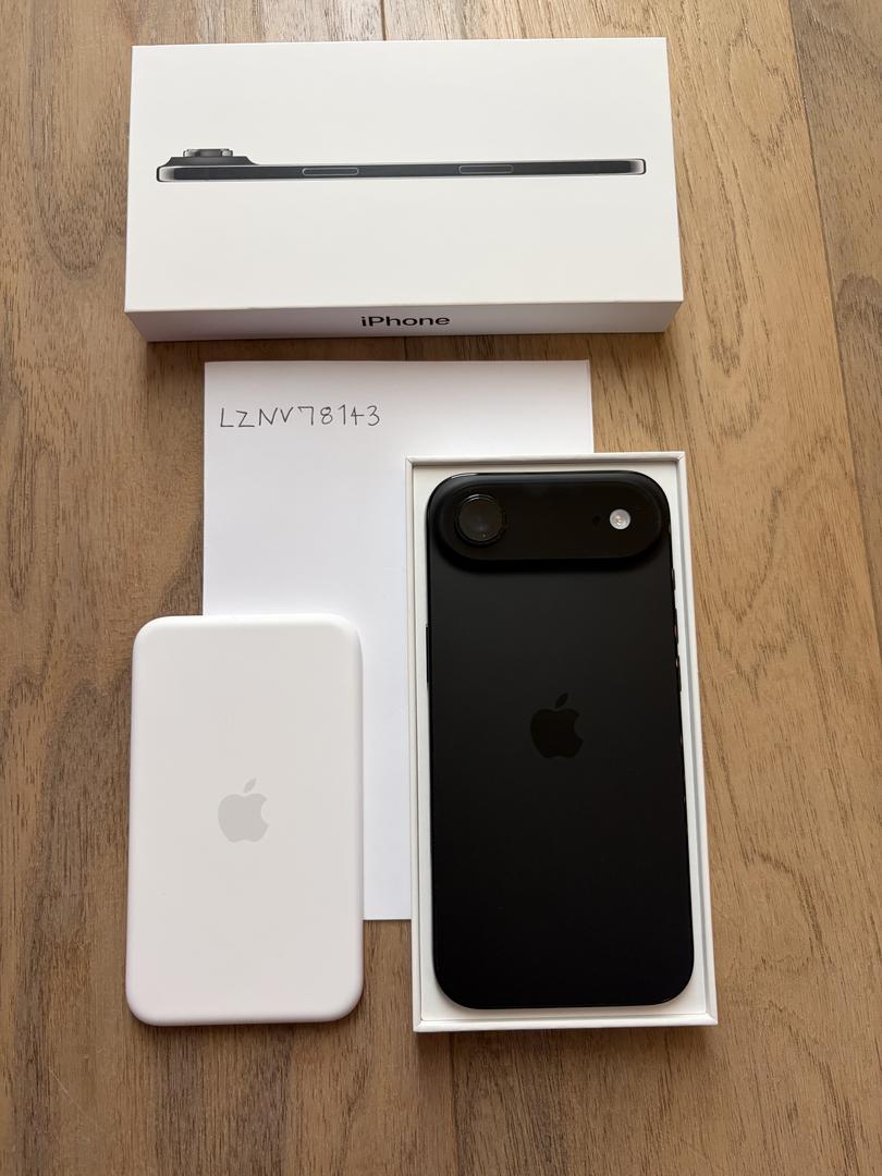 Like new condition IPhone Air (2025). No defects. Included— tempered glass screen protector installed ($10 value) black case, along with the brand new Apple MagSafe battery pack (value of $100) All together this value is over $1100+ . Box is included along with the charging cable.