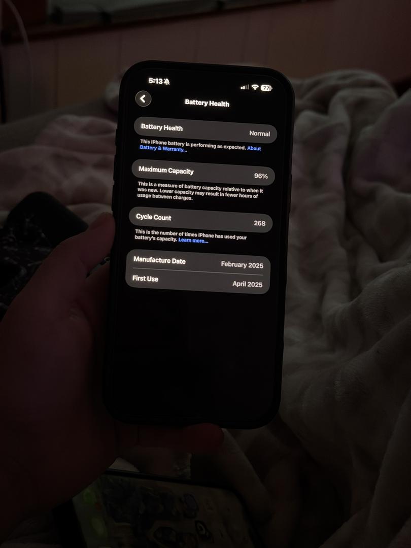 I bought in April 23, 2025 from Apple. I used it with AT&T. It has been in a case with a screen protector since day one. I just took the screen protector off to take pictures of it. The battery health is 96% and the battery cycle count is at 268. I would list the phone as “mint” because I do not see any damage with my naked eye. But due to the battery health and age (8 months) I feel better listing as “good” in case I missed something. The charger is still wrapped in the original plastic and never used.