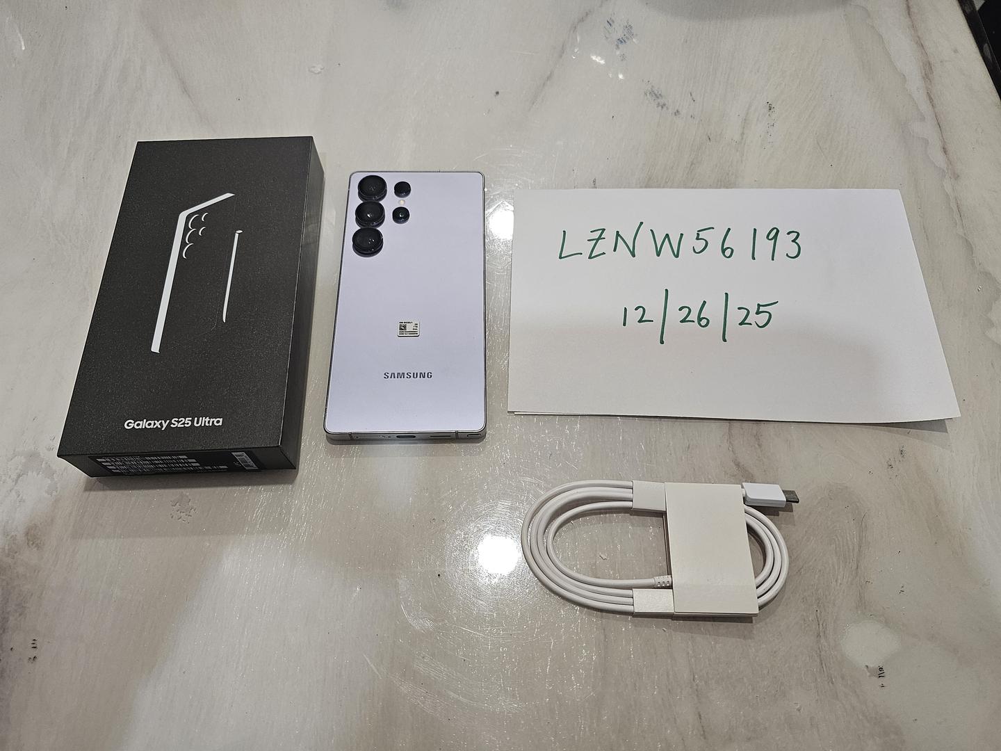 Lightly used Samsung S25 Ultra 1TB. Used for less than one month in mint condition. Includes original box with original USB-C cable. Has tempered glass screen protector installed since day 1. Can remove upon request. Thank you for looking.