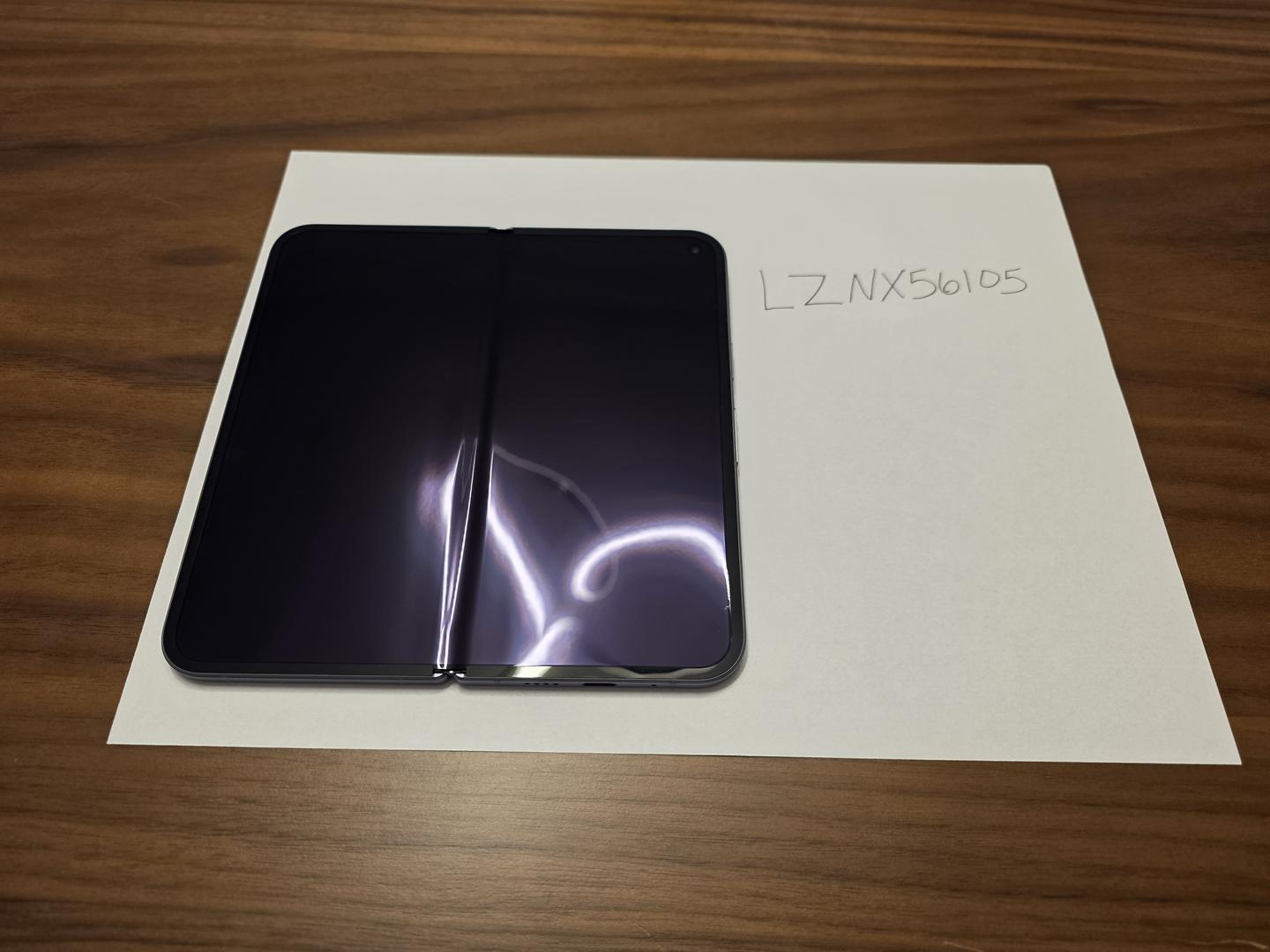 Extremely small pit on the inner screen's lower right corner. Minor scuffs at the top of the hinge.