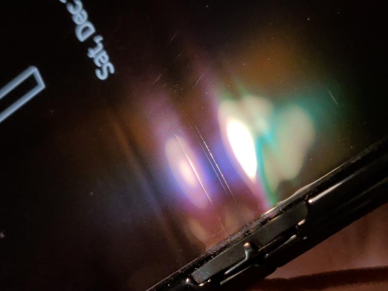 Folding crease forms a thin line on the inner screen. Factory's screen protector is still installed on inner screen.
