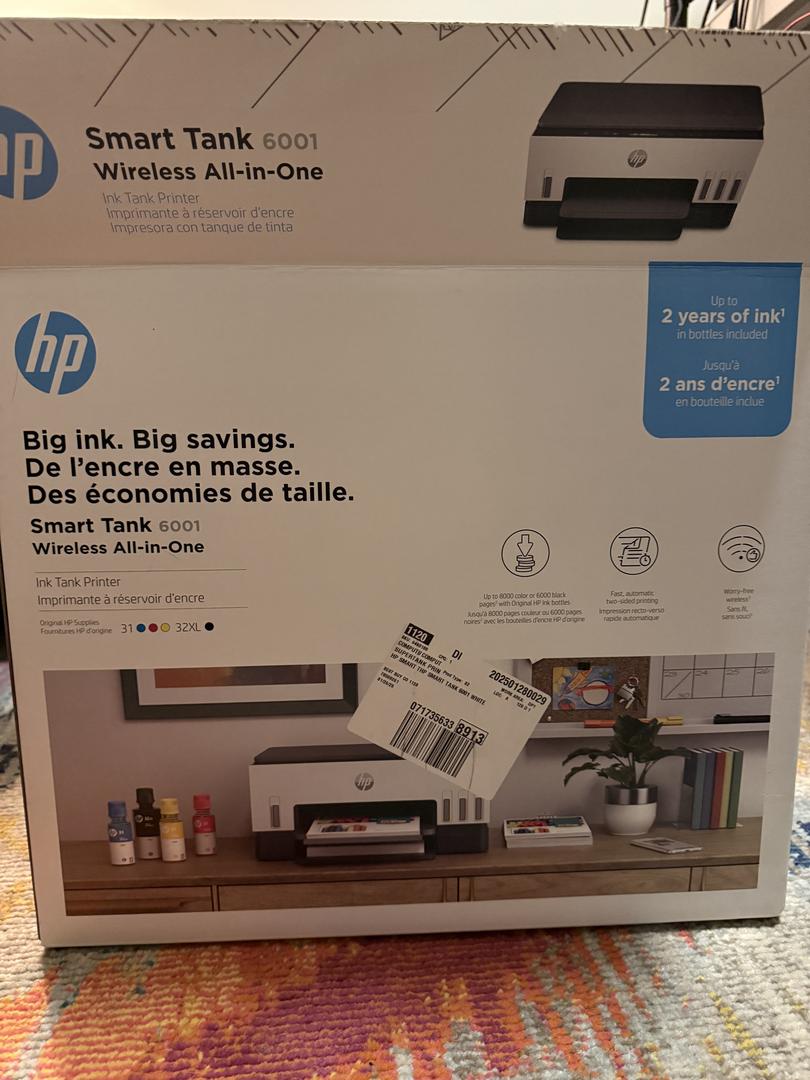 HP Smart Tank 6001 (NEW - Opened box, but did not unbox it)