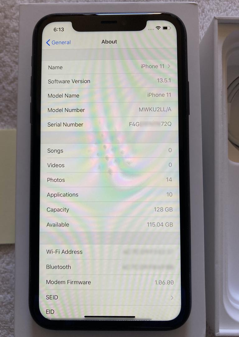 INCLUDES: iPhone 11 shown here, unused original Apple EarPods with lightning connector,