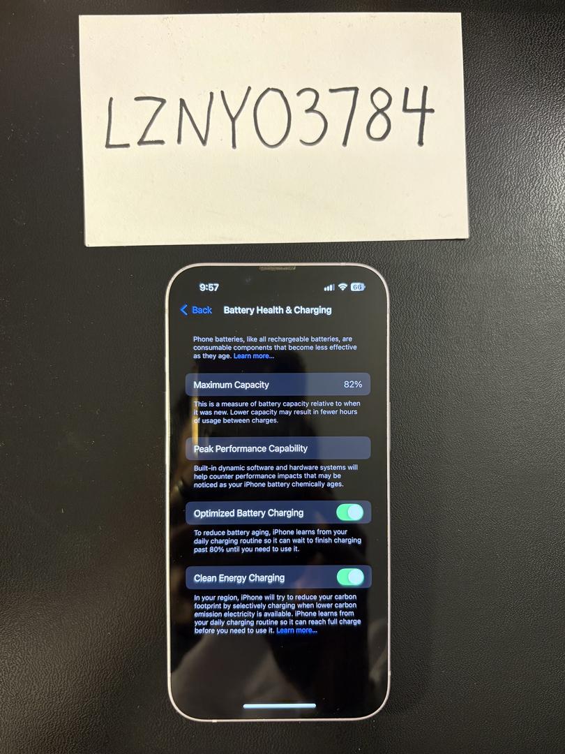 Great condition overall. Had a glass screen protector, camera lens protector, and heavy duty case its entire life. Minor knicks in the top left corner, one knick around the lens (does not affect function at all) and a few other small dots on the sides. All minor cosmetic issues as seen in the photos. Battery health is 82%.