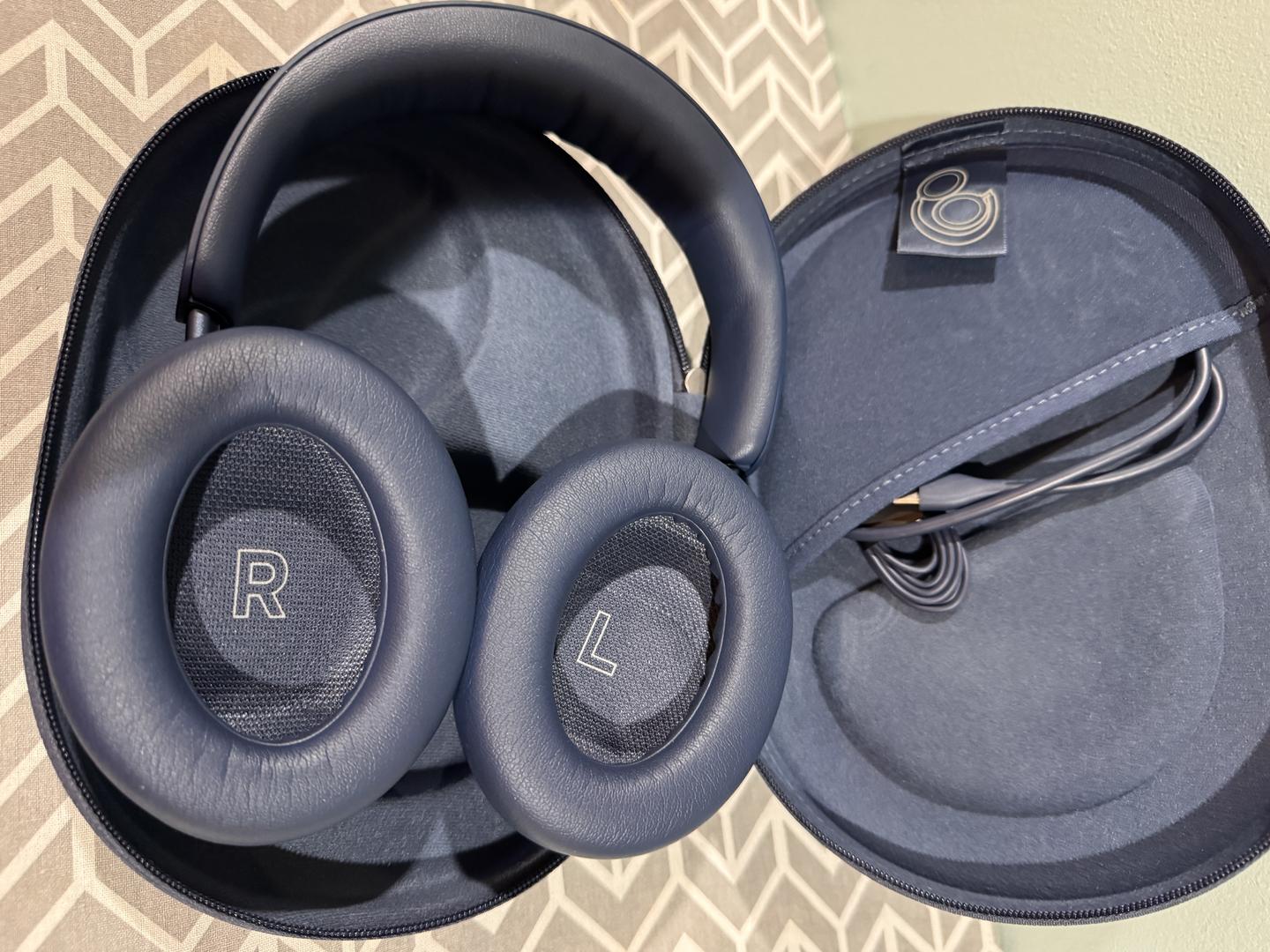 Like new condition Bose QuietComfort Ultra Headphones in lunar blue color. Comes with the case and cables. Used once and then put away.