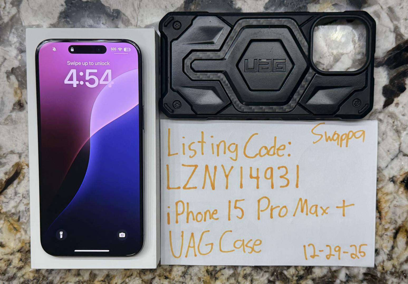 • Phone ships in Apple box shown for safe shipping only (not original box). Device is iPhone 15 Pro Max as listed.