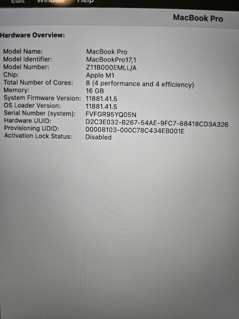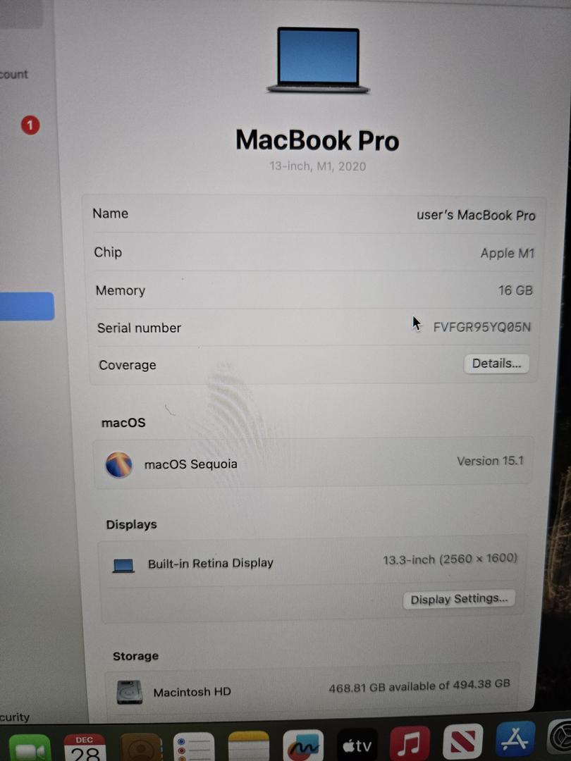 MacBook Pro 13" 2020/16GB RAM/512GB SSD/Fully Functional/Grade B/MacOS Sequoia