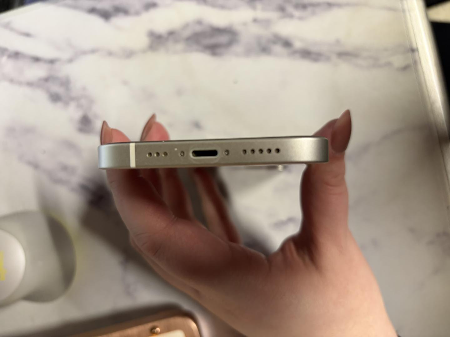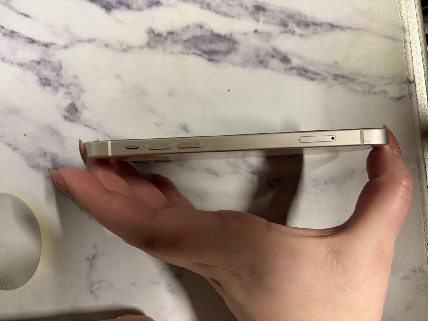 No scratches or marks. There is a glass screen protector on the screen but that can be removed before shipping if requested.