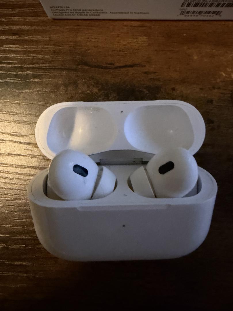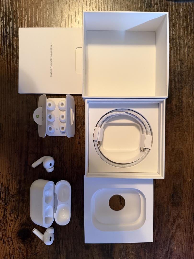 Lightly used for about a year, got the AirPods Pro 3 now. Original box, original tips, I only used one. Charger included, all the papers, original box. Screenshot included from when I bought them brand new on Amazon