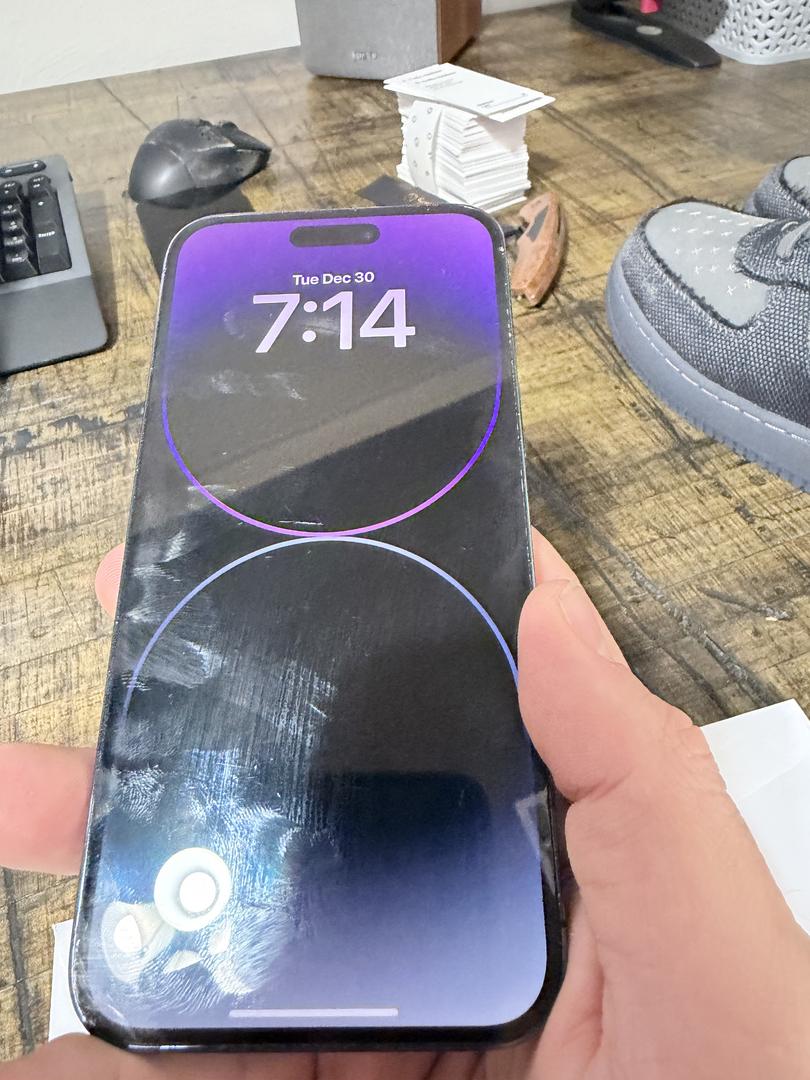 Unlocked iPhone 14 Pro Max 256GB in Deep Purple. Fully functional. 86% Battery Health. Screen has some light surface scratches from daily use (see photos). Frame and back are clean. Ships immediately.