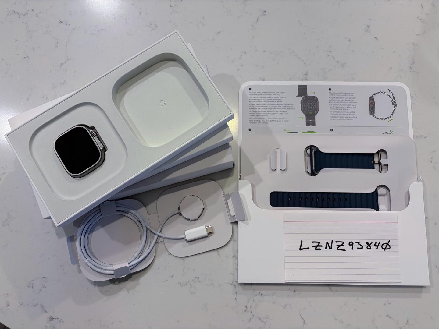 Comes with original packaging and charger, along with a handful of aftermarket watch bands I picked up.