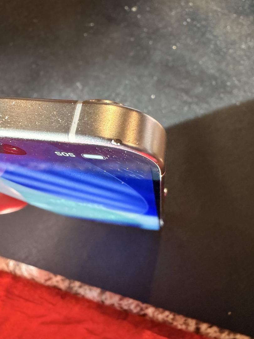 Very small chip on one of the camera rings. Small scuff on top of case.